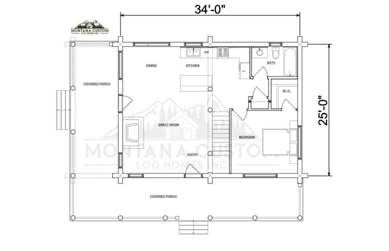 The Skalkaho embraces charm and efficiency in a 1-bedroom design with loft. Its L-shaped kitchen flows into the great room, where a fireplace creates a cozy heart of the home. Covered porches wrap around the front and side, extending outdoor living from the bedroom and gathering spaces. The loft overlooks the great room, offering flexible space that feels both open and intimate.